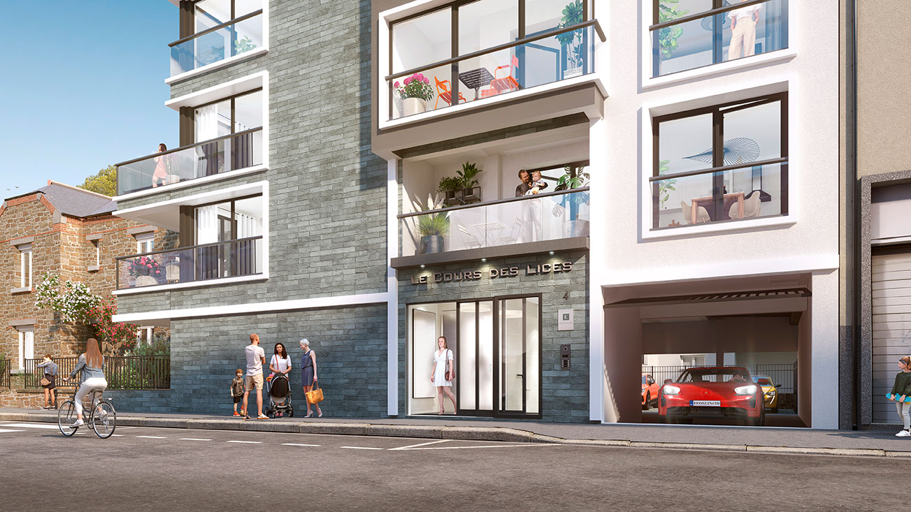 RENNES CENTRE-VILLE un véritable îlot de sérénité au cœur de Rennes, dans le quartier des Lices, le confort de vie au quotidien proche des commerces comme le Marché des Lices, boulangeries, restaurants et autres… à 400 m de la station de métro Sainte-Anne. Cette Résidence intimiste au prestations haut-de-gamme et finitions uniques propose 12 logements du T2 de 40 m² au T5 de 113 m² tous équipés de terrasses. Stationnements sécurisés en sous-sol