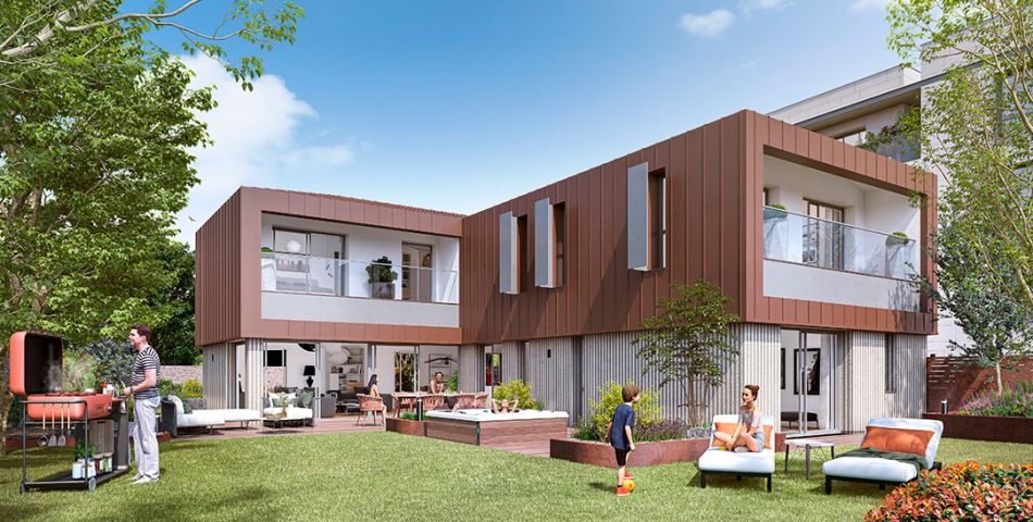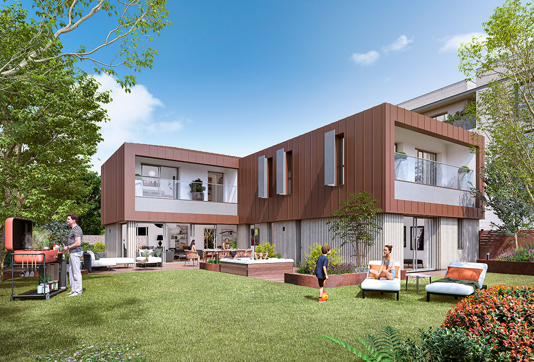 Côté jardin, au sud, s’ouvrent de généreuses terrasses en bois exotique, un matériau noble qui vous facilite l’entretien et vous assure une durabilité dans le temps.