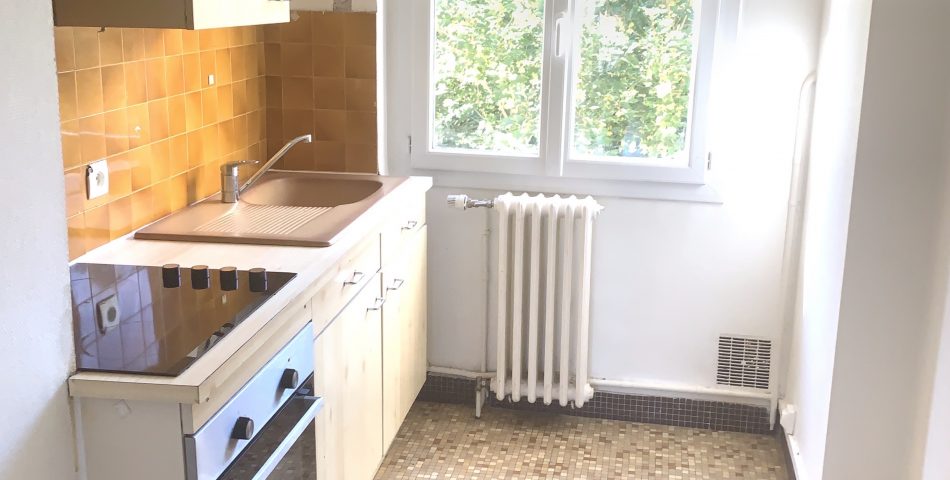 Appartement traversant exposé sud / est – nord / ouest de type T3 / T4 d’une surface de 64 m² environ se situant au 3e étage dans un environnement verdoyant et très calme. Logement lumineux à la distribution classique et très fonctionnelle, une entrée distribuant 1 cuisine indépendante aménagée et équipée, 1 séjour prolongé par un balcon vue sur espaces verts, 1 belle chambre commandée par le séjour. Un dégagement desservant 1 salle d’eau avec douche, un wc indépendant et 2 chambres. Carrelage, beau parquet, chauffage individuel au gaz. Chaudière récente. Petit rafraichissement à prévoir