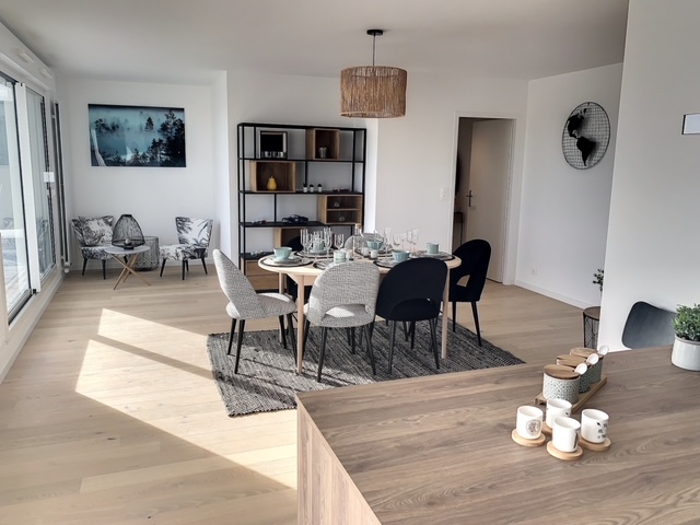 RENNES, proximité des commerces, de la fac. de Droit et de la station de métro Jules Ferry. Appartement de type T6 lumineux d’une surface habitable de 147 m² exposé sud / est / ouest se situant au 5e étage d’une Résidence de 6 étages avec ascenseur. Distribution contemporaine avec de beaux volumes de vie, un magnifique espace de vie double exposition de 64 m² accès sur une terrasse de 80 m², superbe cuisine aménagée et équipée, une suite parentale avec salle de bains et dressing privatif. 2 autres suites parentales avec salle d’eau et dressing privatif, 2 wc suspendus, 1 buanderie, nombreux rangements. Pas de travaux à prévoir. Prestations haut de gamme,